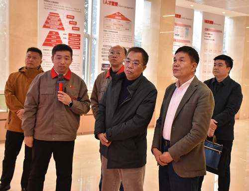 慰問團一行人首先參觀了公司的黨建和企業展廳,黎福超向慰問團一行人介紹了公司黨建工作、企業生產經營和發展規劃等情況。